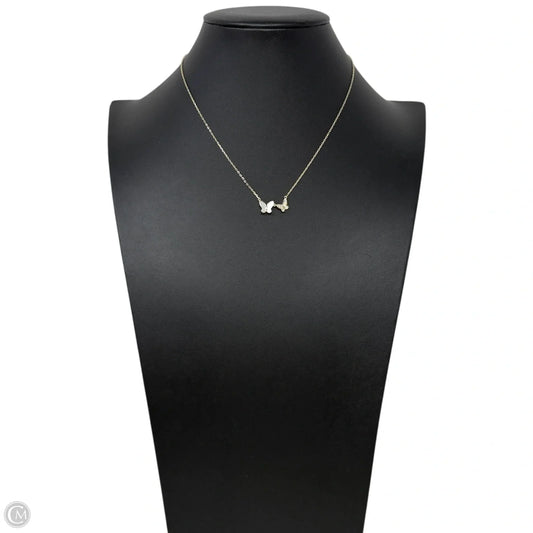14k Gold Over Sterling Silver, Mother of Pearl, & CZ Double Butterfly Pendant Necklace By Anthropologie