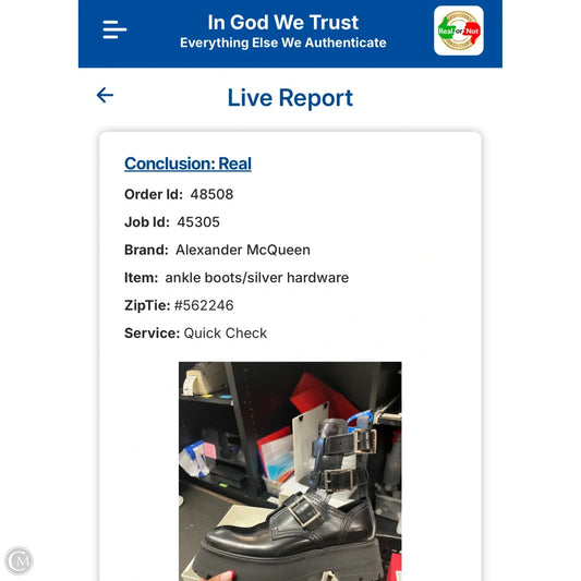 Boots Luxury Designer By Alexander Mcqueen In Black & Silver, Size: 8.5