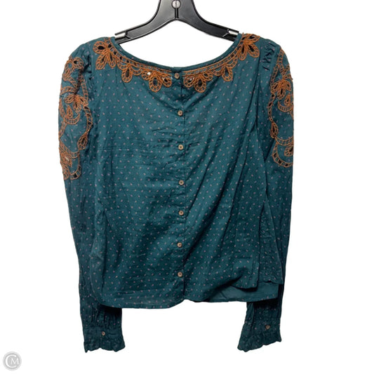 Eyelet Top Long Sleeve By Free People In Blue & Brown, Size: Xs