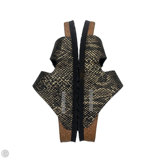 Sandals Flats By Birkenstock In Black & Gold, Size: 6