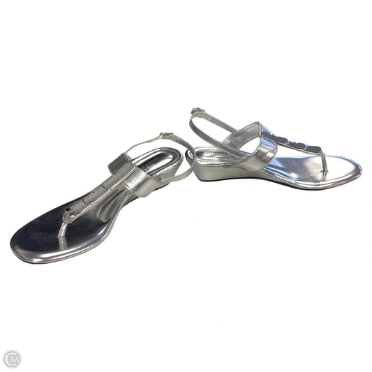 Sandals Heels Wedge By Comfort Plus In Silver, Size: 10