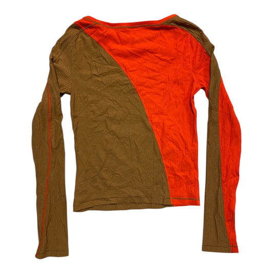 Athletic Top Ls Crewneck By Lululemon In Orange & Tan, Size:S