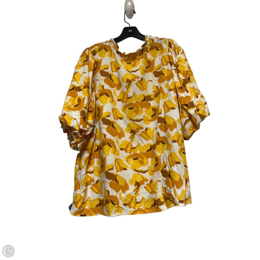 Top Short Sleeve By Ann Taylor In White & Yellow, Size: Xl