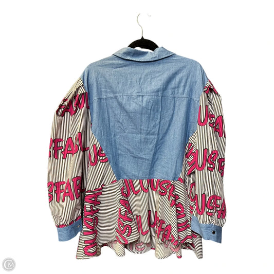 Blouse 3/4 Sleeve By Ashley Stewart In Blue Denim, Size: 3x