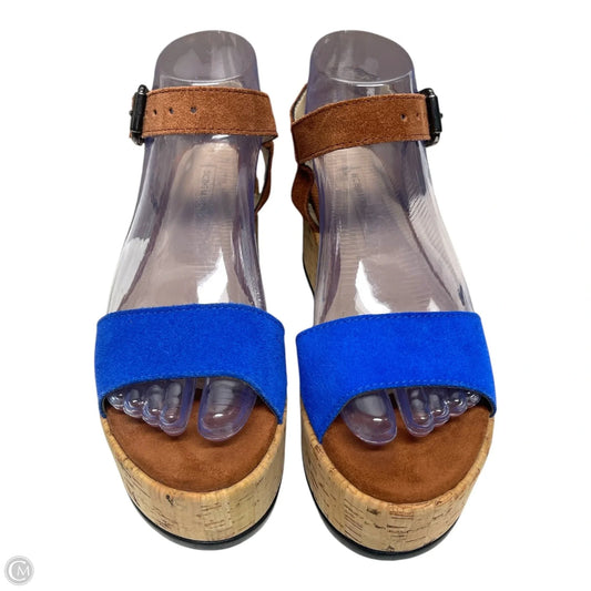 Sandals Heels Wedge By Bcbgmaxazria In Blue & Tan, Size: 6.5