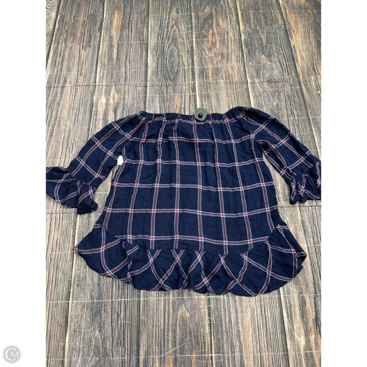 Blouse Short Sleeve By Beachlunchlounge In Plaid Pattern, Size: Xs