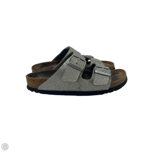 Sandals Flats By Birkenstock In Silver, Size: 7/38