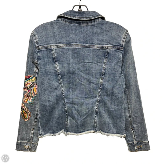 Embellished Jacket Denim By Chicos In Blue Denim, Size: S