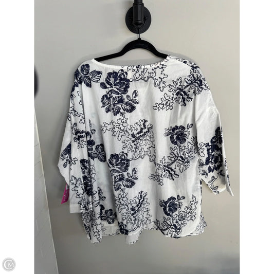 Top 3/4 Sleeve By Cynthia Rowley In Blue & White, Size: 2x