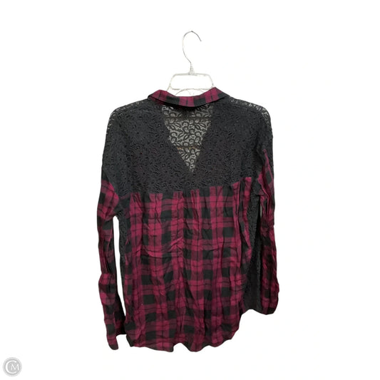 Blouse Long Sleeve By Express In Plaid Pattern, Size: L