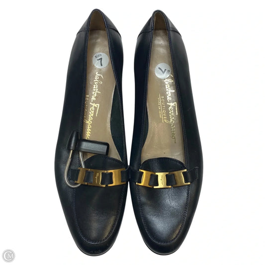 Shoes Luxury Designer By Ferragamo In Navy, Size: 7