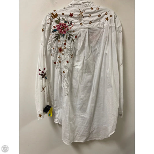 Blouse Long Sleeve By Johnny Was In White, Size: L