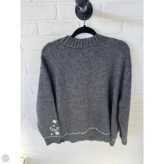 Sweater Cardigan Designer By Johnny Was In Grey & White, Size: M