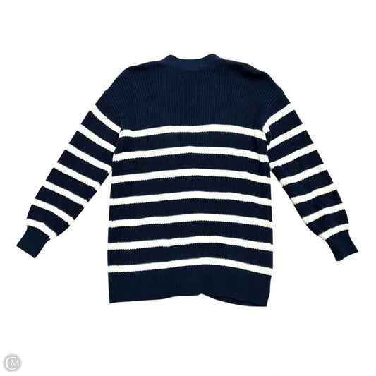 Sweater Cardigan By Loft In Blue & White, Size: M