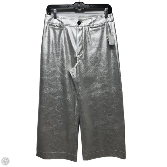 The Ettie High-Rise Crop Wide-Leg Pants: Metallic Vegan-Leather Edition By Maeve In Silver, Size: 6p