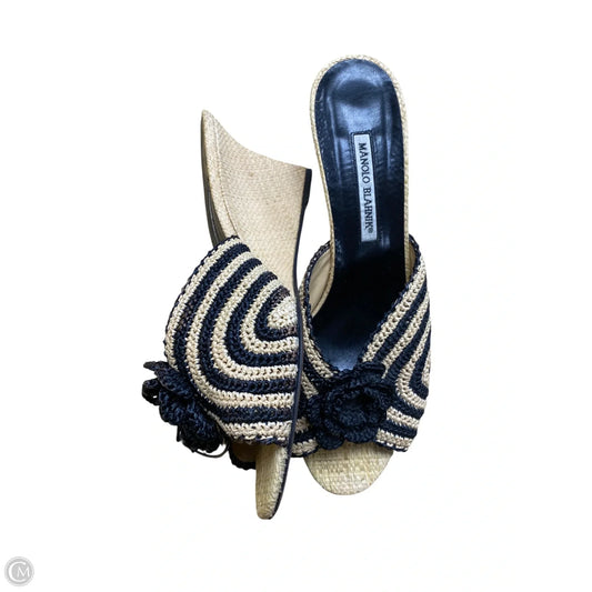 Sandals Luxury Designer By Manolo Blahnik In Black & Tan, Size: 7