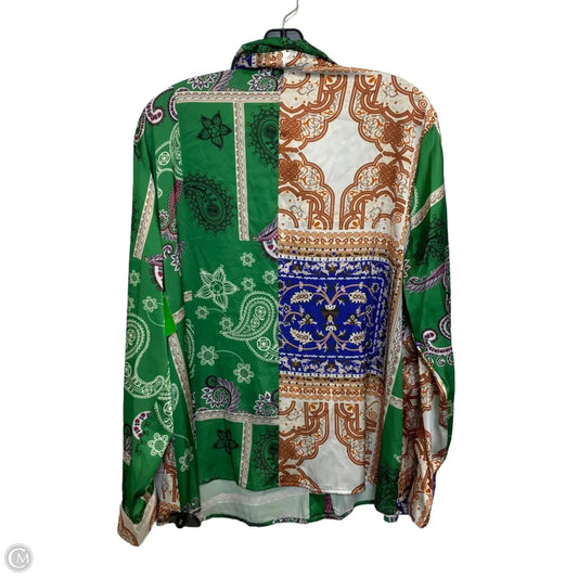 Blouse Long Sleeve By Shein In Brown & Green, Size: 1x