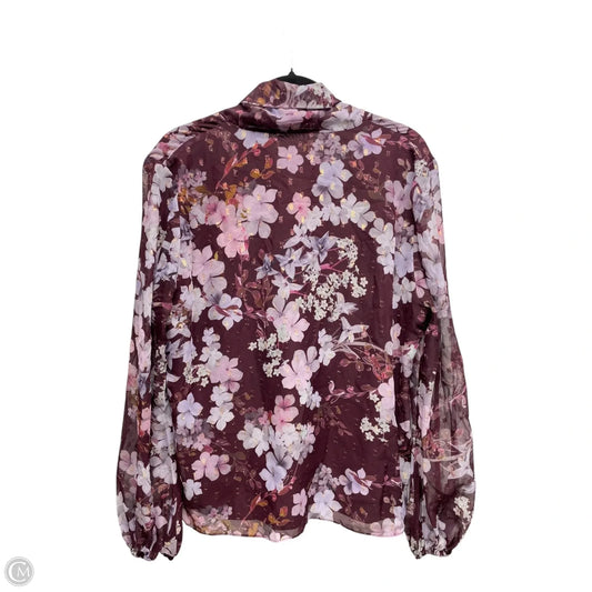 Blouse Long Sleeve By Ted Baker In Floral Print, Size: Xl