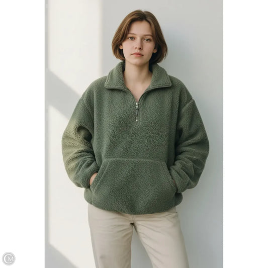 Jacket Fleece By Topshop In Green, Size: M