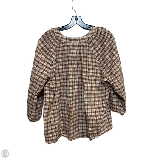 Top Long Sleeve By Universal Thread In Plaid Pattern, Size: L