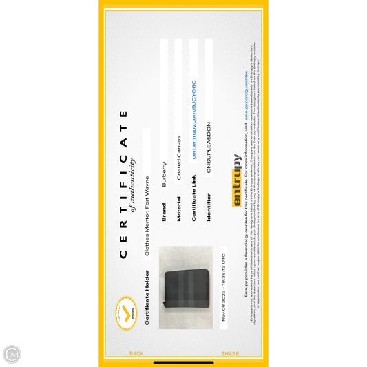 Wallet Luxury Designer By Burberry, Size: Small