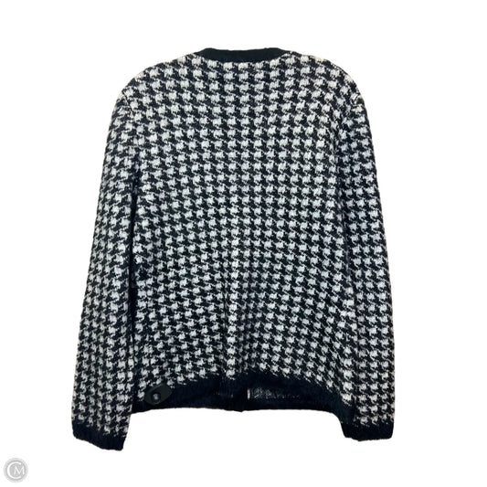 Sweater Cardigan Designer By Tahari In Black & White, Size: M