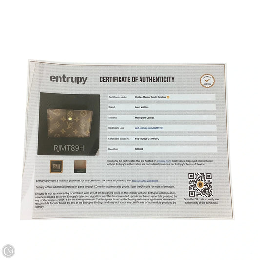 Wallet Luxury Designer By Louis Vuitton, Size: Medium