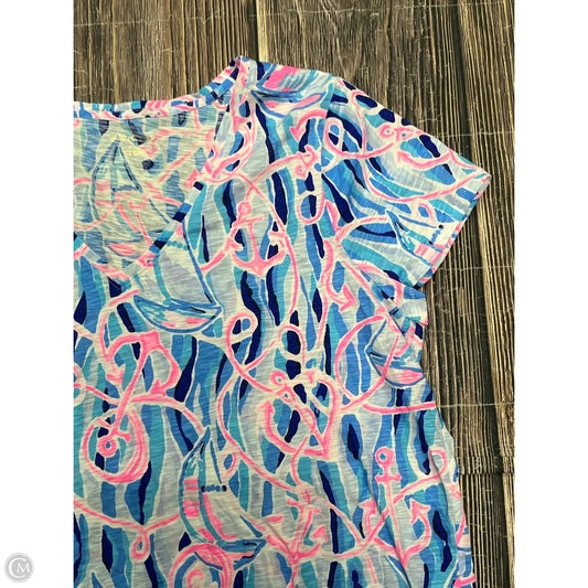 Top Short Sleeve Designer By Lilly Pulitzer In Blue & Pink, Size: Xl