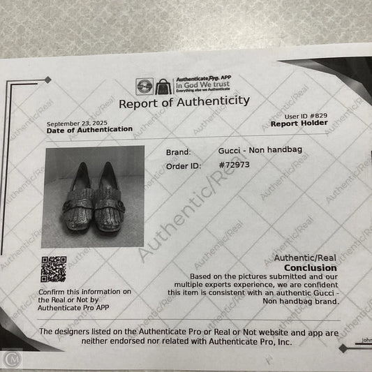 Shoes Luxury Designer By Gucci In Gold, Size: 6