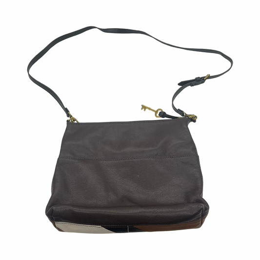 Crossbody Leather By Fossil In Brown & Tan, Size:Medium