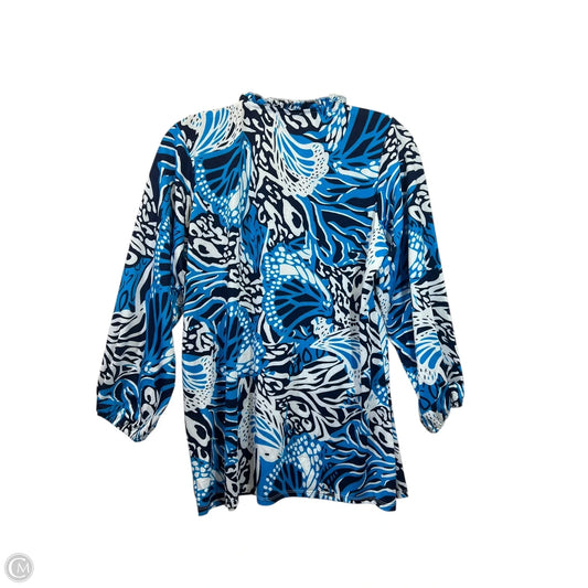 Top Long Sleeve By Sunny Leigh In Blue & White, Size: M