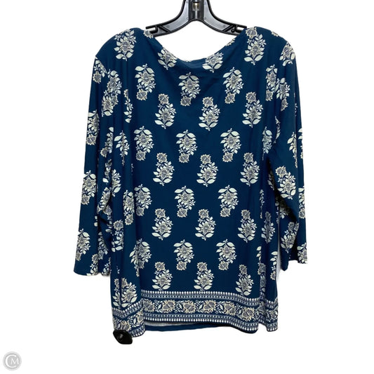 Top Long Sleeve By Ann Taylor In Blue & White, Size: Xl