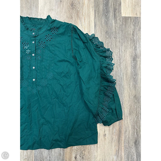 -Blouse Long Sleeve By J. Crew In Green, Size: Xxl