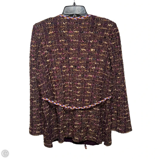 Braided-Trim Tweed Knit Jacket By Misook In Multi-colored, Size: M
