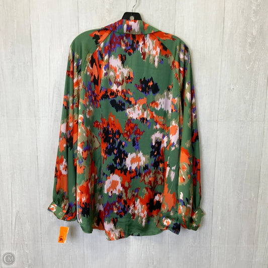 Blouse Long Sleeve By Clothes Mentor In Green & Orange, Size: 2x