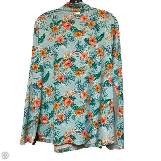 Athletic Top Long Sleeve Collar By Cabana Life In Tropical Print, Size: 1x