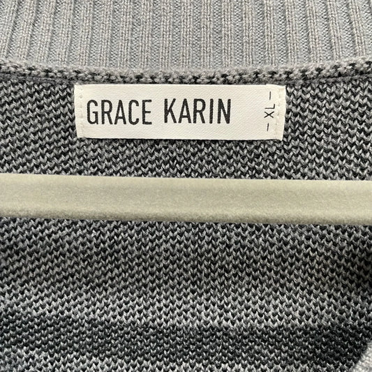 Sweater Cardigan By Grace Karin In Black & Grey, Size: 1x