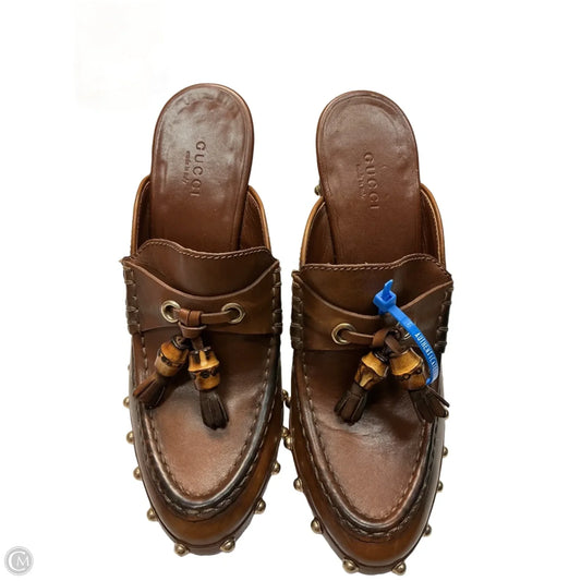 Shoes Luxury Designer By Gucci In Brown, Size: 6