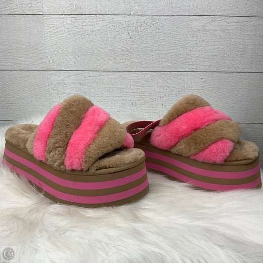 Slippers Designer By Ugg In Brown & Pink, Size: 8