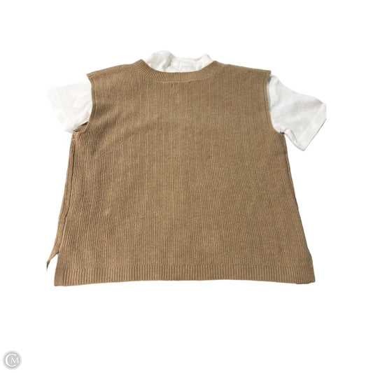 Top Short Sleeve By Cme In Tan & White, Size: Xs