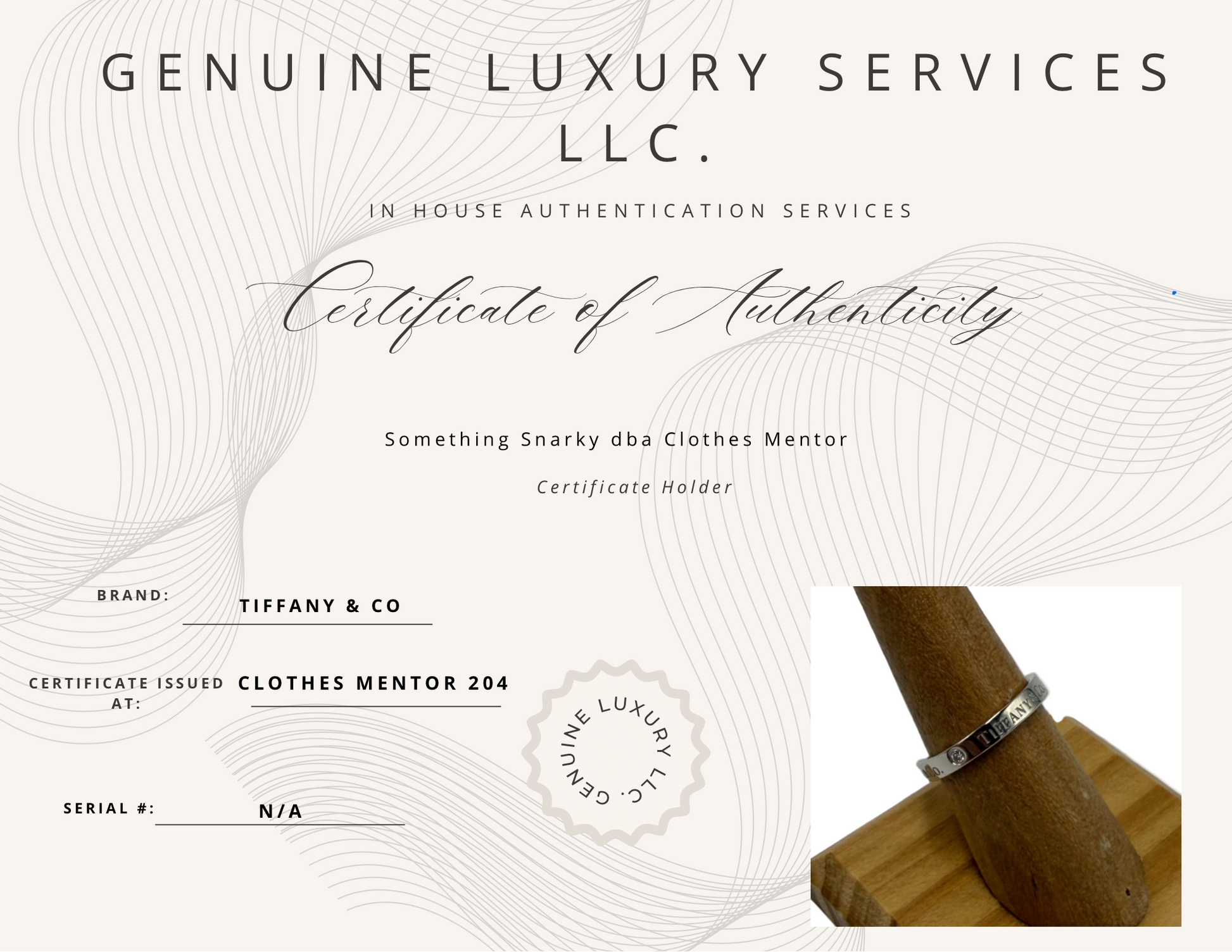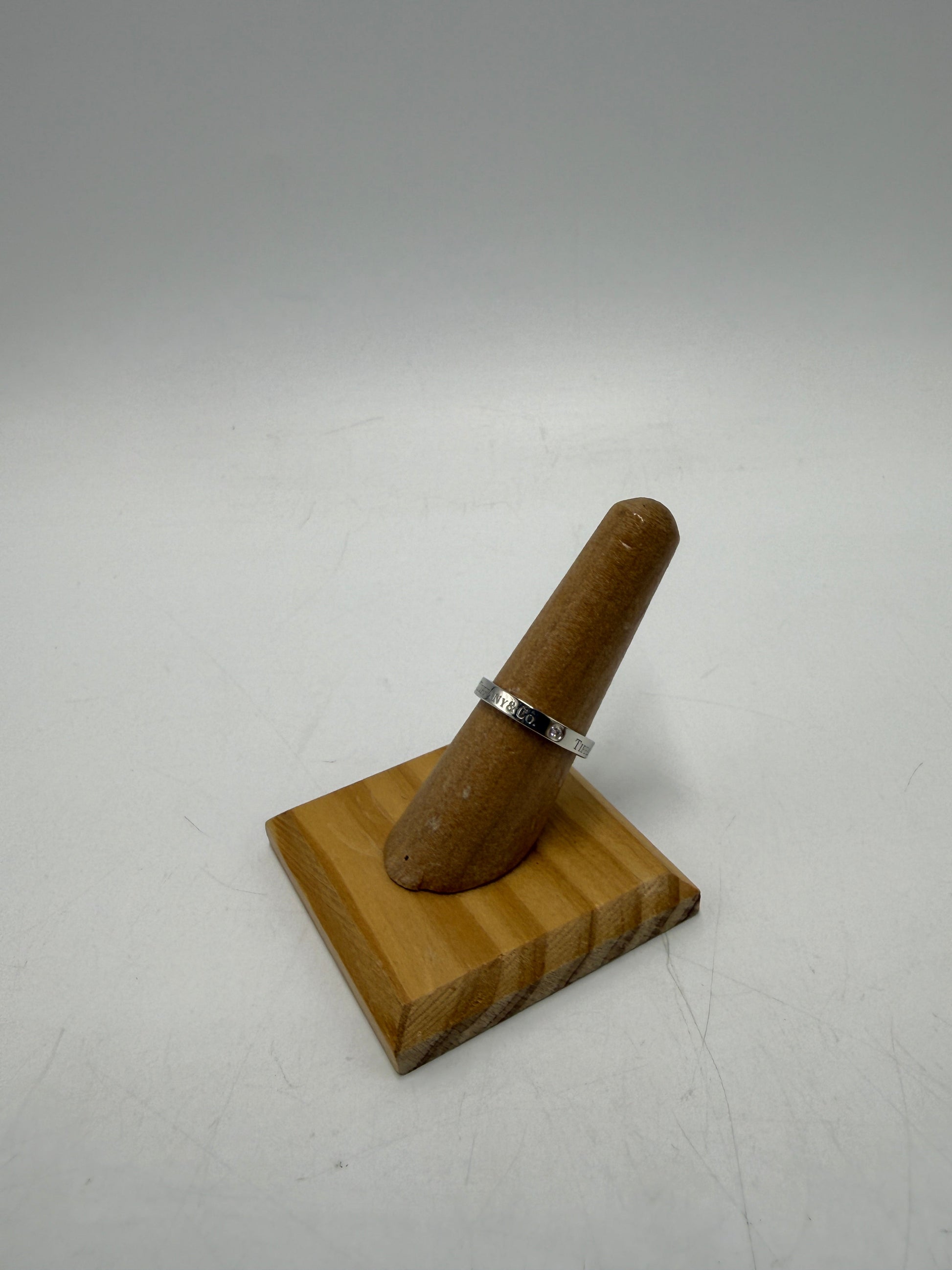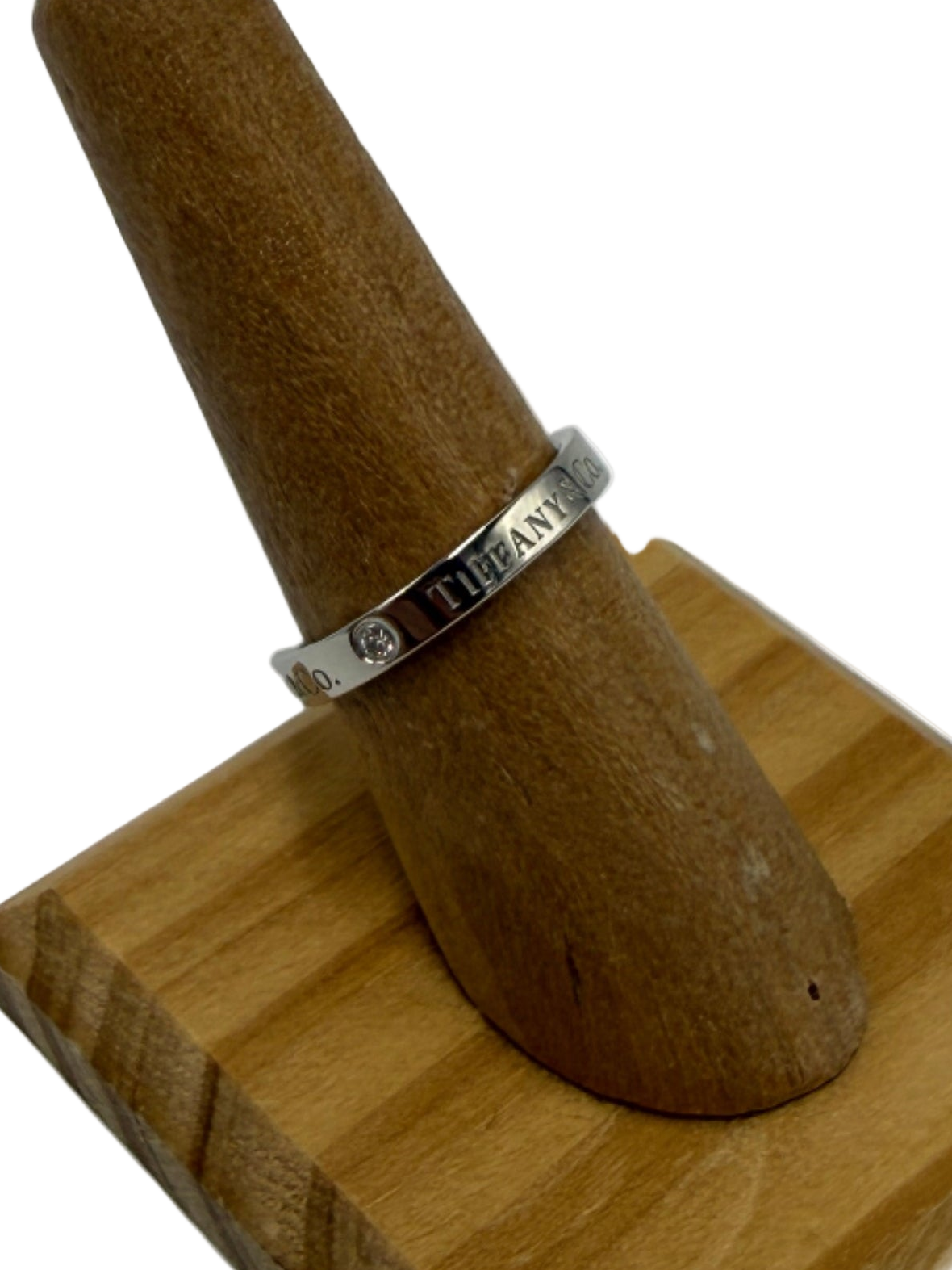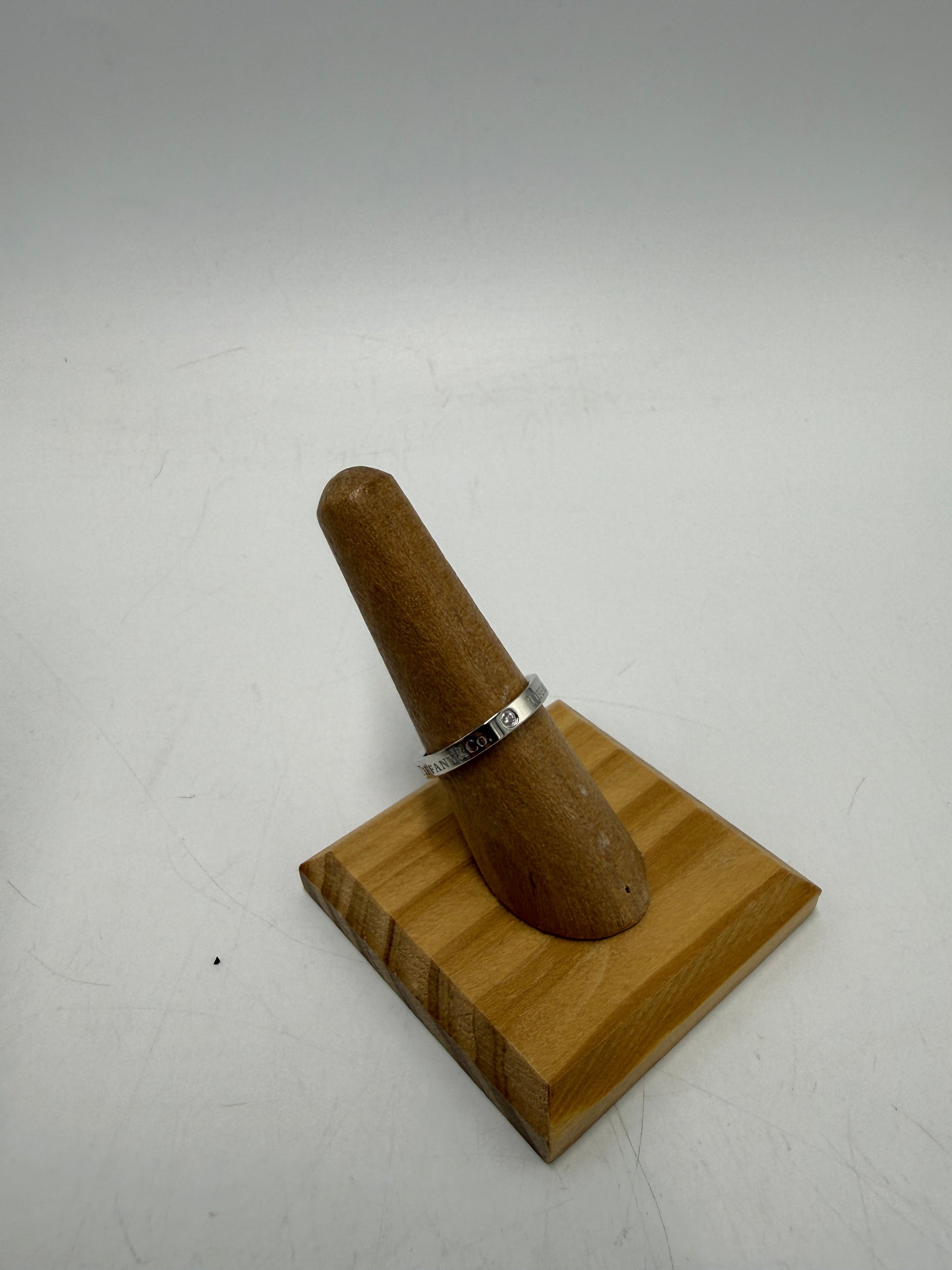 Other Info: RETAILS FOR $3,000 AT T & CO., CERTIFIED AUTHENTIC, SET IN PLATINUM, 3mm BAND w/ DIAMONDS.