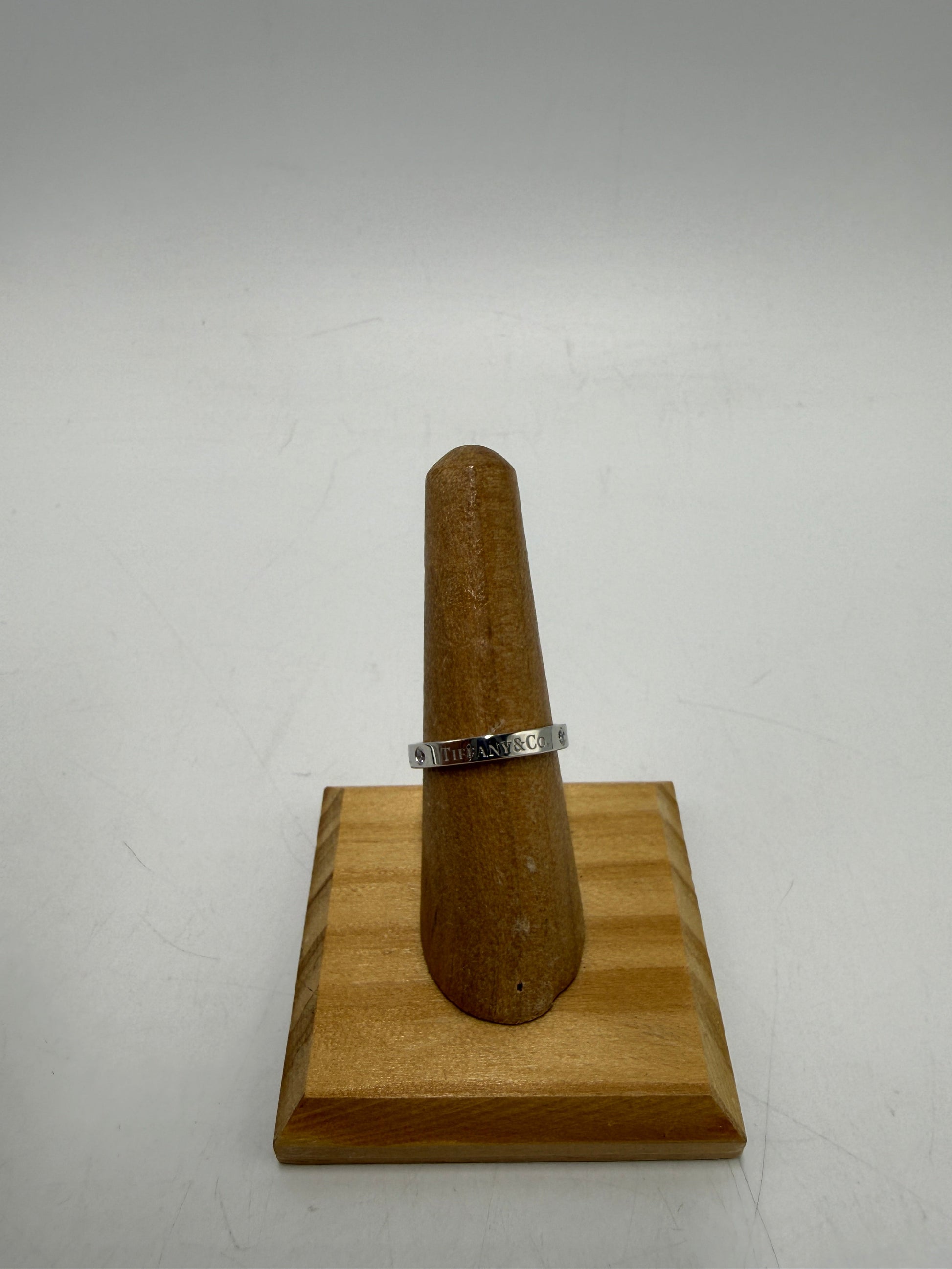Tiffany & Company Platinum 3mm Band w/ Diamonds Luxury Designer Ring, Size 7
