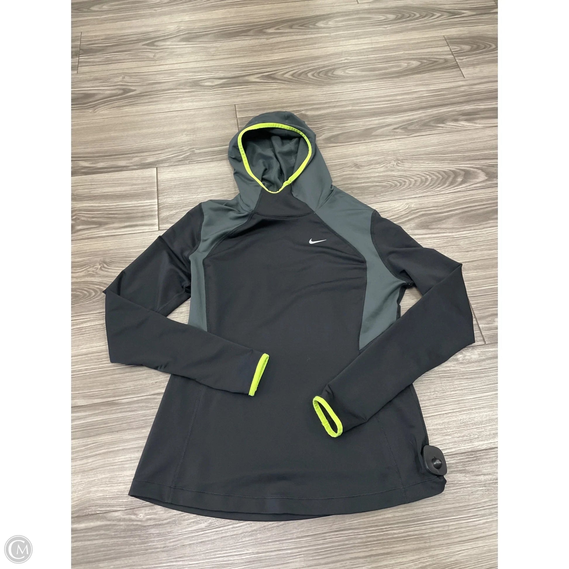 Athletic Sweatshirt Hoodie By Nike In Black & Green, Size: L