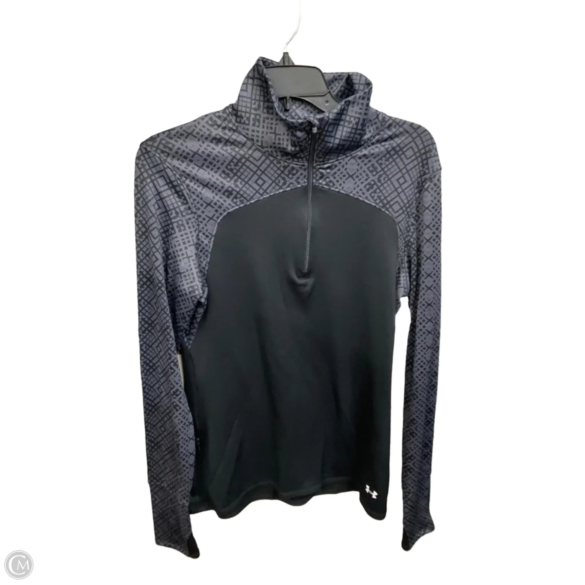Athletic Top Long Sleeve Collar By Under Armour In Black & Grey, Size: M
