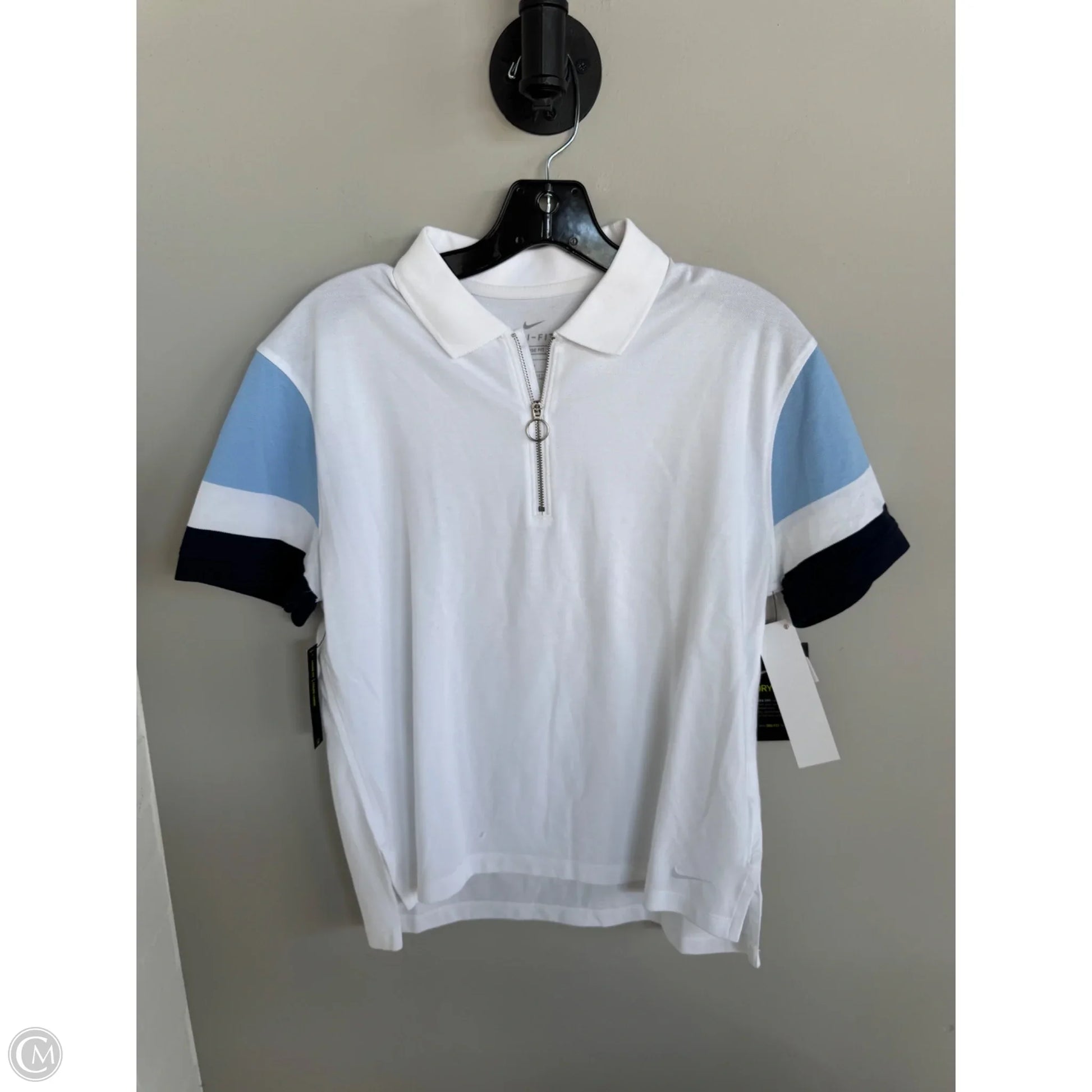 Athletic Top Short Sleeve By Nike In Blue & White, Size: M