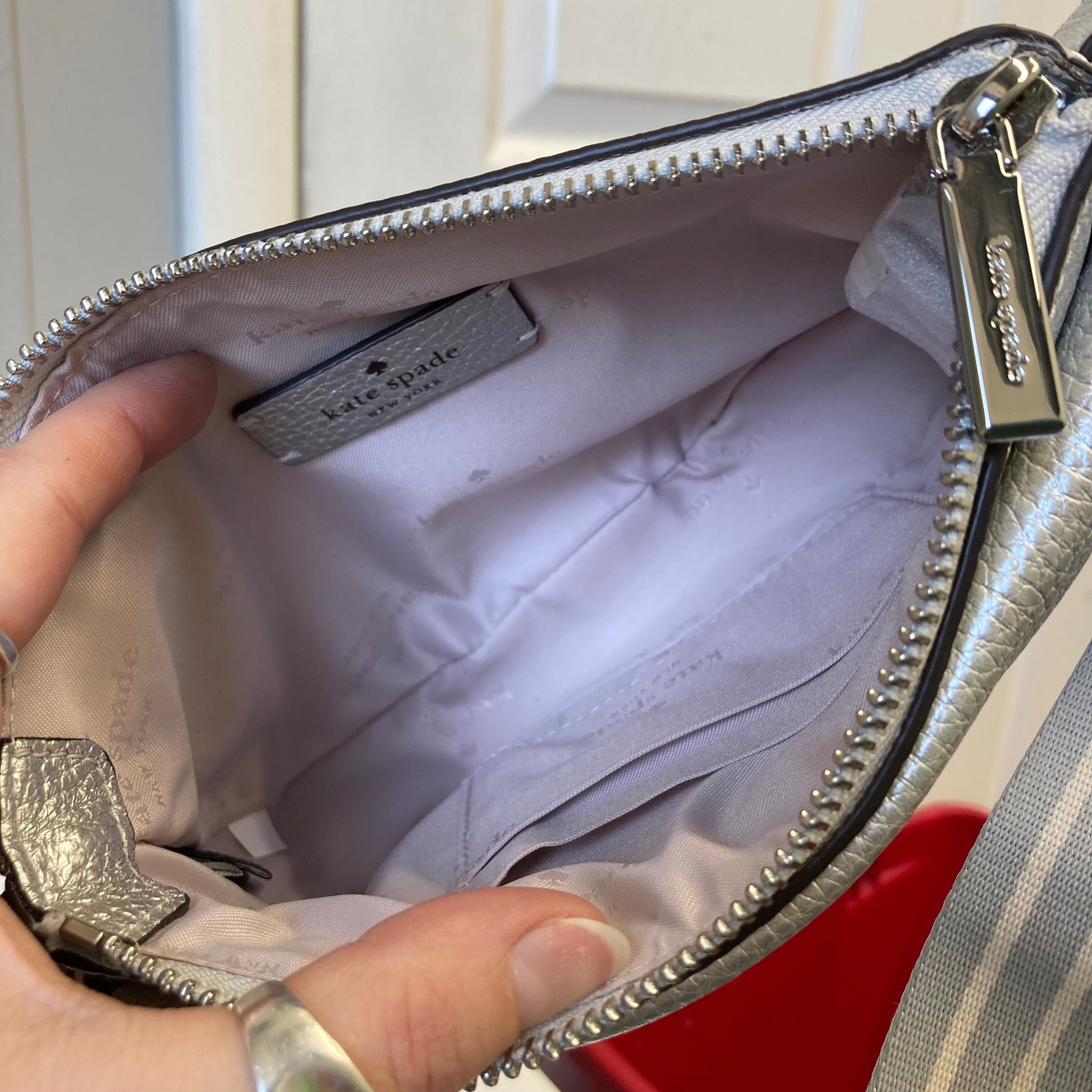 Belt Bag Designer By Kate Spade In Silver, Size:Small