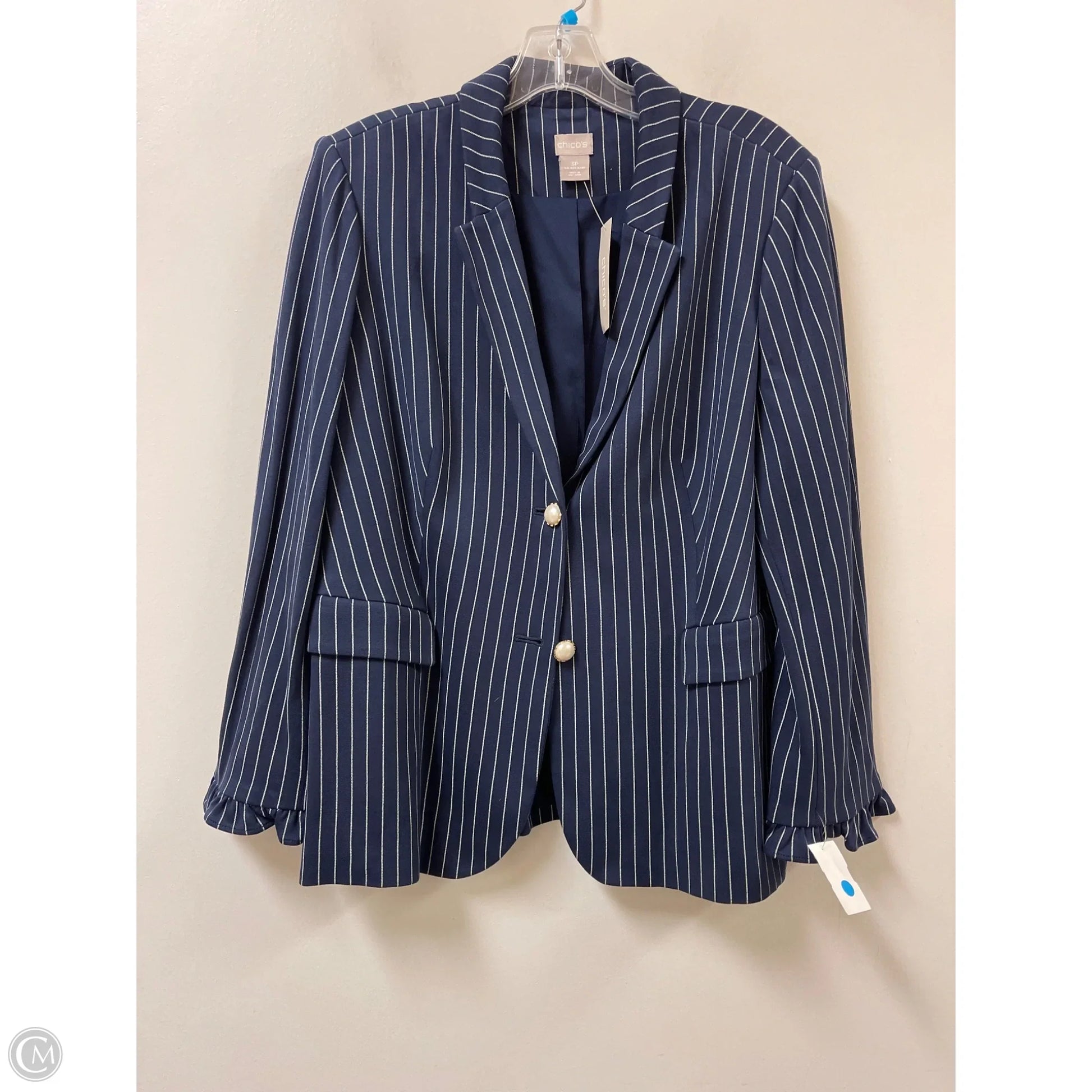 Wrap yourself in sophistication with this Navy Blazer by Chico's in XLP. Effortlessly chic, tailored fit, perfect for any occasion.