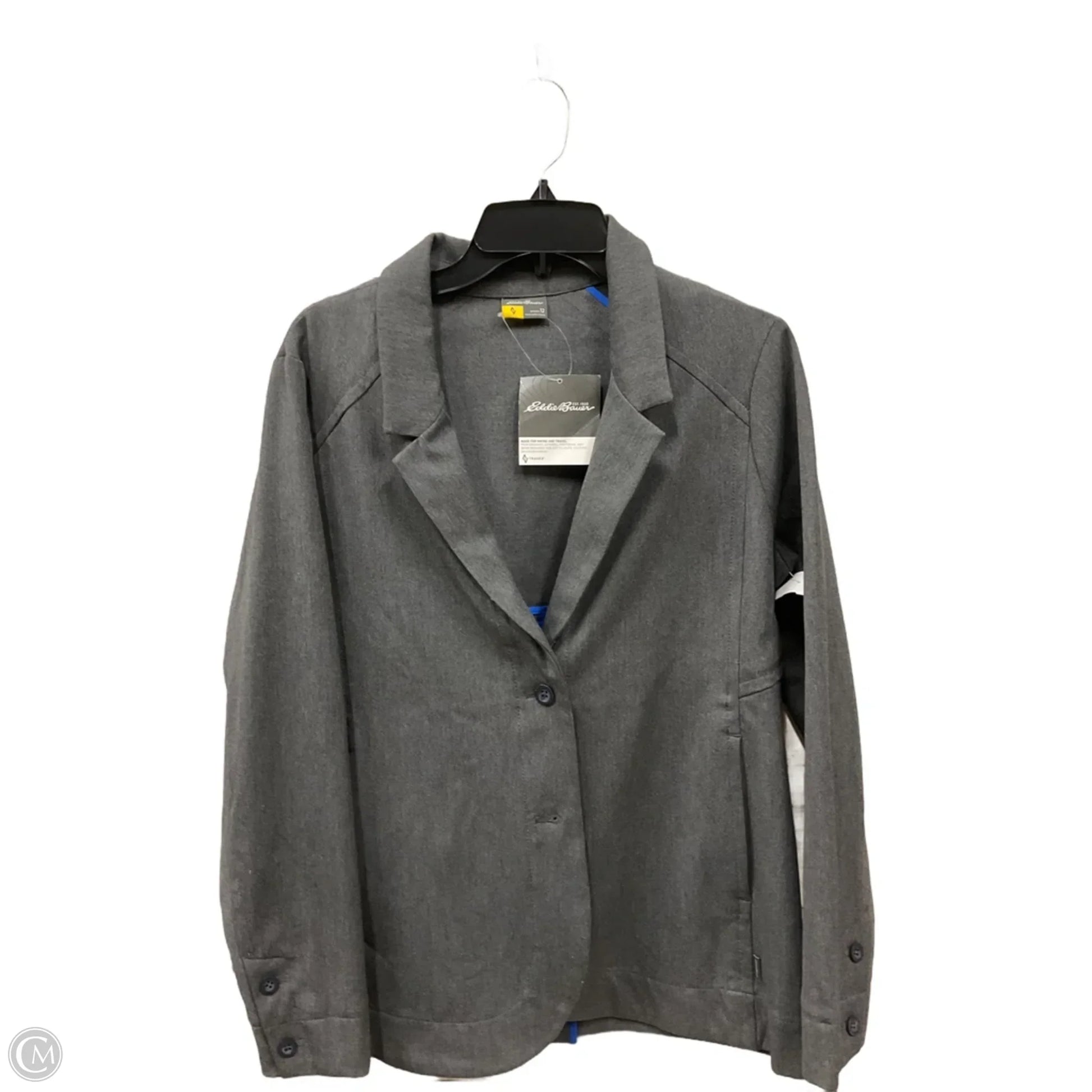 Stay effortlessly chic in this Eddie Bauer grey blazer, size L. Classic style meets comfort for a versatile wardrobe staple.