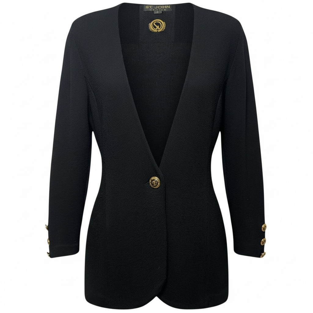Knit One Button Blazer By St John Knits In Black, Size: 10