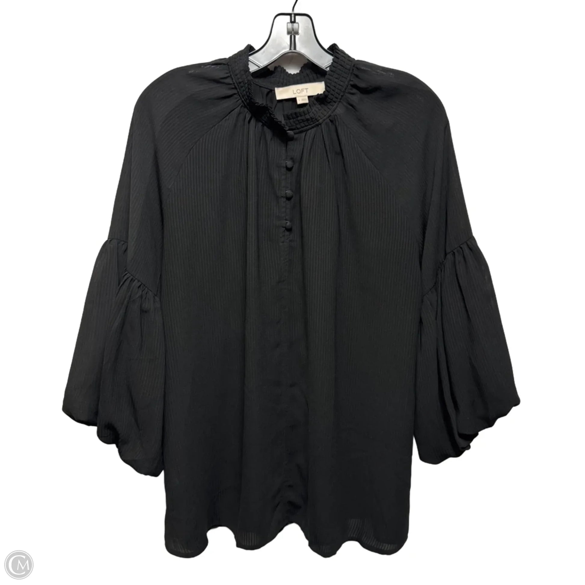 Blouse 3/4 Sleeve By Loft In Black, Size: L